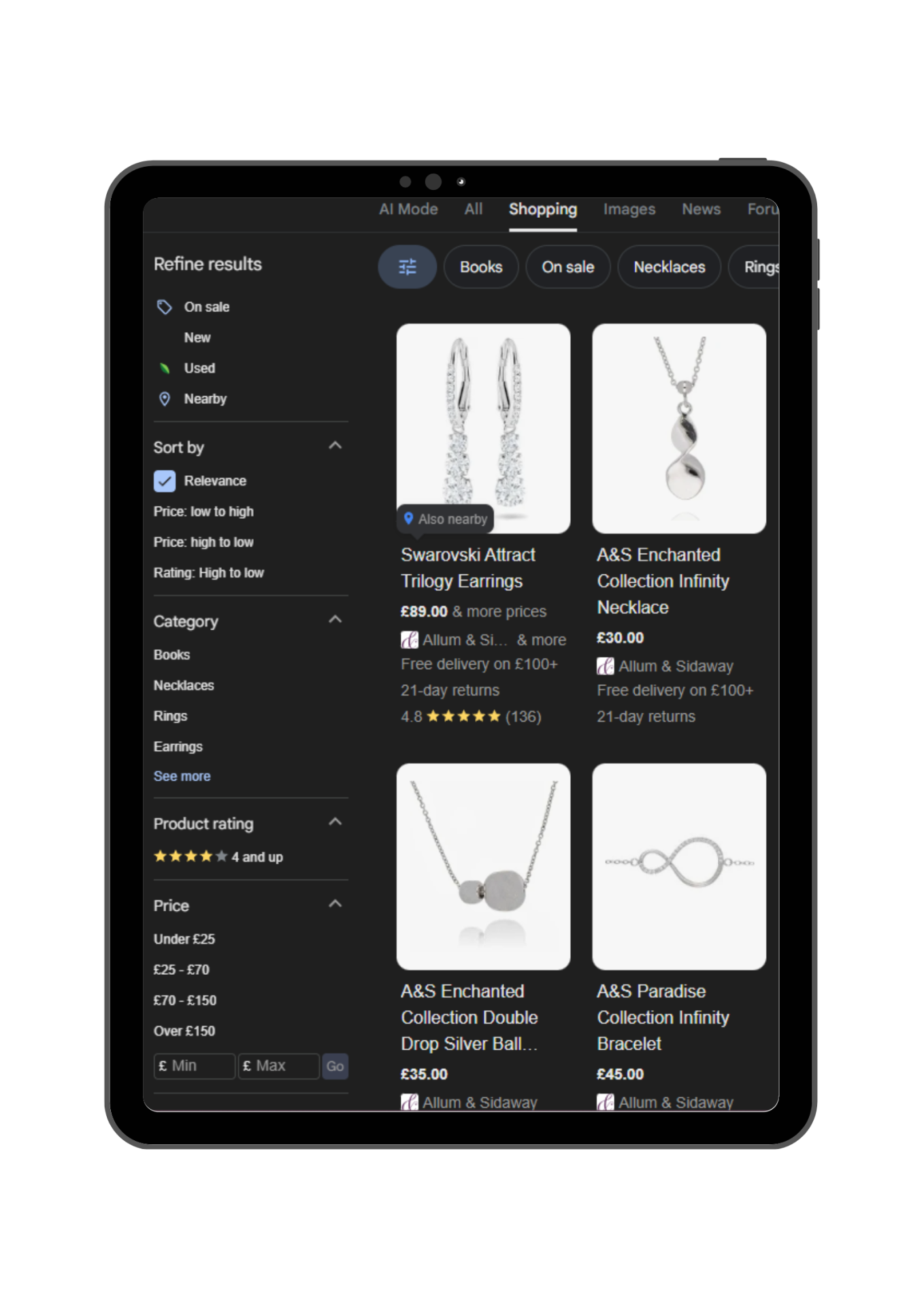 Allum & Sidaway are a multi-award winning independent jeweller with six stores across the South of the UK, as well as an extensive e-commerce website. We run successful free and paid shopping ads for them, below are results we have achieved within one month. (Nov 2024)